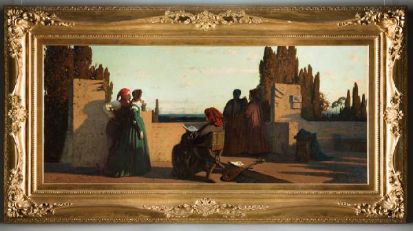 Inserito in una cornice coeva, dorata a guazzo ed a missione, tamponato sul retro con pannello in multistratto.