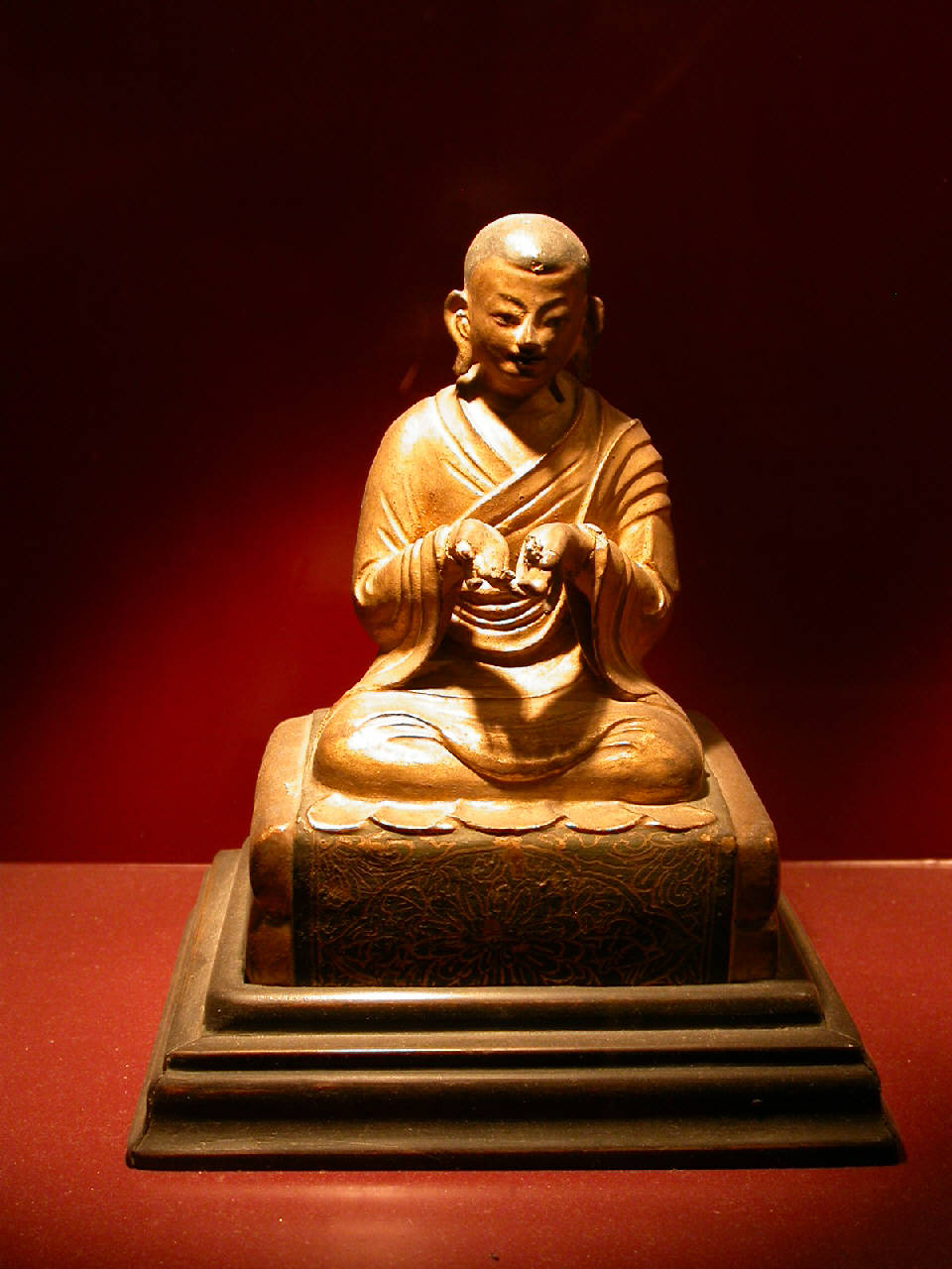 luohan (arhat), discepolo del Buddha. Statuetta raffigurante un luohan (arhat), discepolo del Buddha