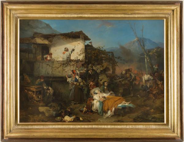 - NOTIZIE STORICO CRITICHE Il dipinto potrebbe essere identificato con l'opera esposta a Brera nel 1851 "Olio rappresentante i profughi da un villaggio incendiato". In tal caso l'opera sarebbe stata commissionata dal conte G. Litta.