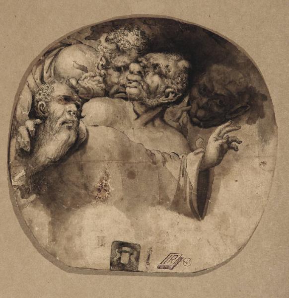 - NOTIZIE STORICO CRITICHE Il foglio è stato acquistato da Riccardo Lampugnani in una data imprecisata, ma certamente anteriore al febbraio 1969: una foto del disegno, scattata in quei giorni, è infatti conservata nell'album Lampugnani D.14. Il disegno reca, in basso al centro, la marca della collezione del conte Johannes von Ross di Berlino (1787-1848; Lugt 2693). Una nota a matita sul passepartout riferisce il foglio al pittore fiammingo Marten de Vos (Anversa 1532-1603): il segno a penna eleborato e preciso, le campiture a bistro finemente modulate si ritrovano identici, in effetti, in alcuni disegni degli anni tardi dell'artista. Il volto e il gesto di S. Antonio sono, inoltre, assai vicini a quelli che Marten de Vos usa per uno dei suoi ultimi dipinti, le "Tentazioni di Sant'Antonio" (1591- 1594), ora conservato presso il Koniklijik Museum voor Schone Kunste di Anversa.