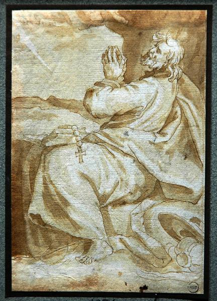 - NOTIZIE STORICO CRITICHE Il foglio reca al verso, in alto a destra, una antica attribuzione a Maganza che non è possibile, a mio avviso, confermare. L'anonimo autore del disegno di collezione Lampugnani, veneto, probabilmente, e attivo entro la prima metà del XVII secolo, mostra piuttosto, a mio avviso, qualche affinità con i modi di Claudio Ridolfi, per il segno angoloso, per le ombre liquide tracciate modulando abilmente la densità dell'acquerello (si veda, per confronto, la "Madonna con S. Francesco e altri santi" della Biblioteca Ambrosiana di Milano; p. 161 in "Claudio Ridolfi. Un pittore veneto nelle Marche del '600", a cura di C. Costanzi e M. Massa, Ancona 1994).