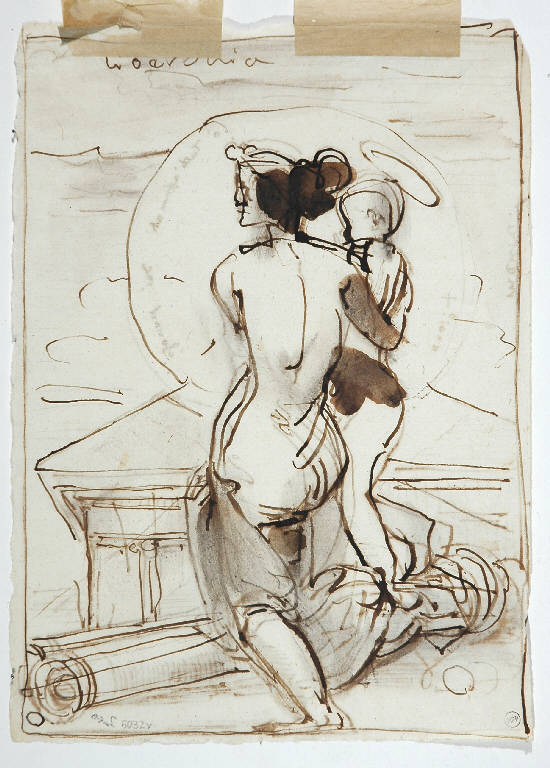 - NOTIZIE STORICO CRITICHE Sul cartoncino di supporto, una nota a penna riferisce il disegno a Fortunato Duranti e propone una datazione al 1820. L'attribuzione a Duranti è indiscutibile: la monumentalità delle figure, però, suggerisce una data più tarda, attorno al 1830-35 (si veda, per confronto, lo studio per "Madonna con Bambino" esposto nel 1973 presso la galleria Stanza del Borgo di Milano, cat. n° 31, pp. 76-77).