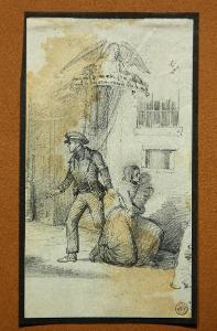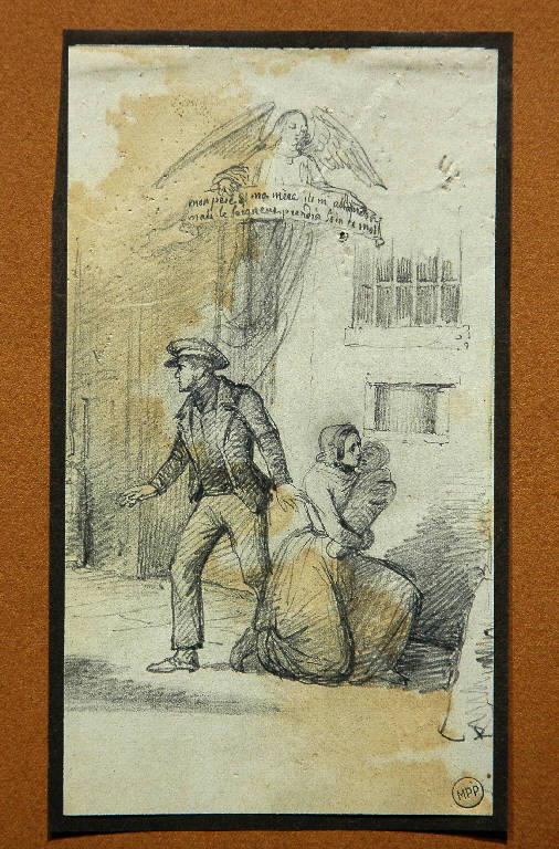 - NOTIZIE STORICO CRITICHE Sul cartoncino di supporto una nota riferisce il disegno a Francesco Gonin: l'attribuzione è senz'altro da confermare, per confronto con alcuni studi preparatori eseguiti da Gonin per le celebri vignette dell'edizione 1840-42 dei "Promessi Sposi" di Alessandro Manzoni (cfr. p. 147, fig. n° 70 in "Francesco Gonin 1808-1885", a cura di F. Dalmasso e R. Maggio Serra, Torino 1991). Come suggerisce Riccardo Lampugnani in un appunto posto sul supporto, il disegno è forse preparatorio per una illustrazione, finora non rintracciata.