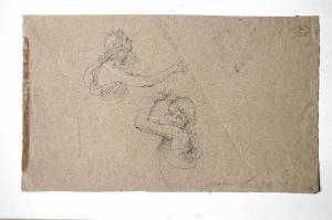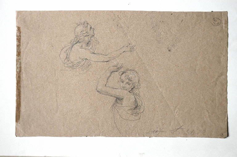 - NOTIZIE STORICO CRITICHE Il disegno reca, in basso a destra, una scritta antica: "Fr.co Coghetti fece". Il nome di Coghetti è senz'altro da confermare: e in particolare, il busto di ragazzo del verso, studiato in due diverse posizioni, è a mio avviso assai vicino alla figura del giovane coppiere, probabilmente Ganimede, che versa da bere a Giove nelle "Nozze di Amore e Psiche" dipinte da Goghetti nel 1844 per il conte Ferrante Terni di Crema (cfr. F. Mazzocca "Francesco Goghetti" in "I pittori bergamaschi dell'Ottocento", Bergamo 1992, vol. 1, p. 122). Il dipinto è una replica del perduto affresco che Coghetti aveva eseguito tra il 1834 e il 1839 in Palazzo Torlonia a Roma (Mazzocca cit., p.122).