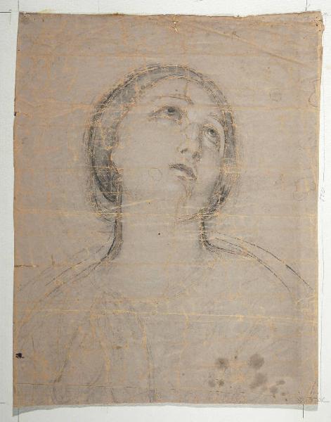 Recto: ritratto femminile; a matita su carta preparata grigia, pesantemente ripassata a penna. Verso: schizzo veloce per figura maschile riversa a terra e circondata da uomini e donne; a matita su carta color grezzo.