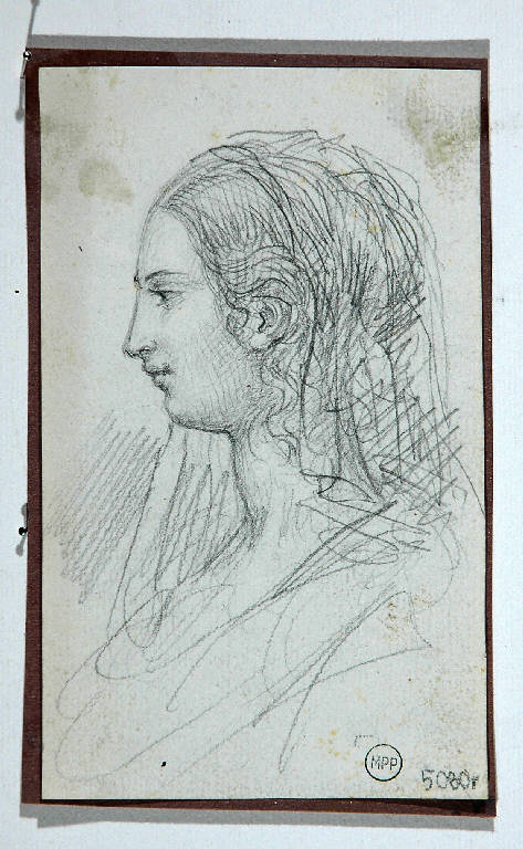 Recto: testa di donna velata, di profilo, a matita su cartoncino bianco. Verso: testa d'uomo con barba, di profilo, a matita su cartoncino bianco.