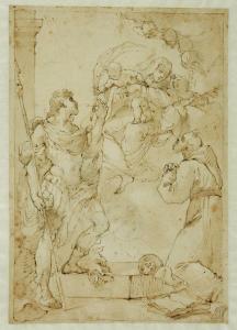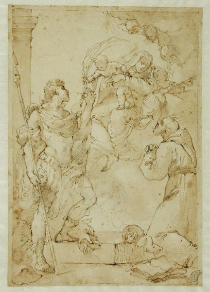 - NOTIZIE STORICO CRITICHE Il foglio è stato esposto alla mostra dedicata alla collezione di Riccardo Lampugnani che il Museo Poldi Pezzoli ha organizzato nel 1997 ("Riccardo Lampugnani: una collezione milanese donata al museo Poldi Pezzoli", Milano 1997, p. 19, n° 30), con una attribuzione a Gaetano Gandolfi che è senz'altro da confermare: il segno a penna veloce ed elegante, le lievi acquerellature si ritrovano, infatti, identici in alcuni disegni della produzione giovanile dell'artista bolognese; si veda, in particolare, l' "Angelo reggicortina" di collezione privata bolognese, che Gandolfi esegue, intorno al 1764, per una delle figure della decorazione a fresco della chiesa di San Rocco a Bologna (cfr. D. Biagi Maino "Gaetano Gandolfi", Milano 1995, tav. X, p. 33).