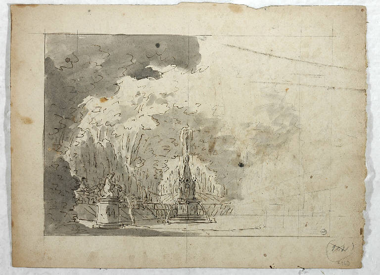 - NOTIZIE STORICO CRITICHE La fontana al centro richiama l'edificio cuspidato con statua sulla sommità presente nel disegno realizzato da Vacca per il balletto "La distruzione del regno delle fate" dato al Teatro Regio nel 1833, conservato all'Accademia Albertina di Torino (cfr. Cultura figurativa... 1980, p. 851)..