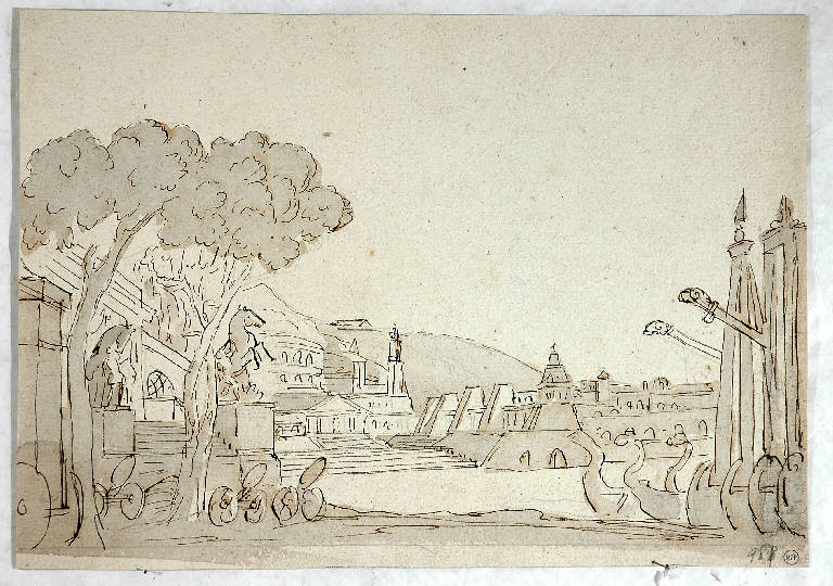 - NOTIZIE STORICO CRITICHE La raffigurazione della città nella quale compaiono vari tempi, la foggia degli edifici e la presenza delle macchine da guerra che inquadrano la scena a destra lasciano pensare che il disegno si riferisca ad una composizione ambientata nel mondo classico antico. Potrebbe trattarsi del ballo "Oreste (o La morte di Egisto)" dell'Otello di Rossini che si svolse al Teatro Regio di Torino nella stagione 1825-26.