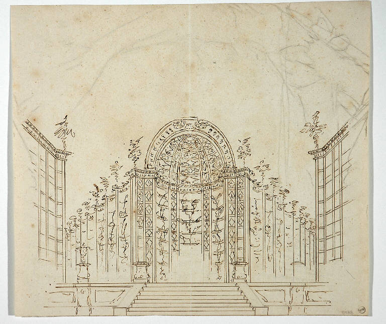 Schizzo per scena con nicchia cui si accede da scalinata. ARCHITETTURA ILLUSIONISTICA