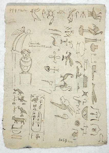 Studio per busto entro nicchia e simboli di tipo geroglifico/ Riquadro decorato e simboli di tipo geroglifico. SIMBOLI EGIZI