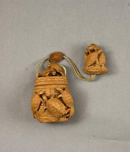 Ojime, raffigurante tartarughe, con la funzione di stringere il laccio (himo) che passava attraverso il tonkotsu e il netsuke.