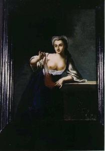 Figura femminile con drappo rosso (uno dei cinque sensi?)