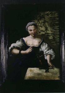 Figura femminile con cagnolino (uno dei cinque sensi?)