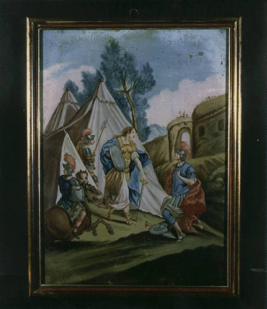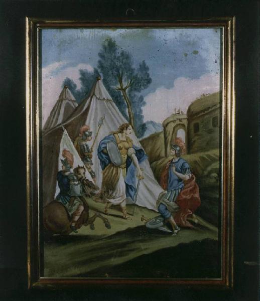 Soldato in ginocchio davanti a una donna guerriero