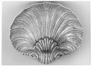 A forma di conchiglia con scanalature, tre piedini a forma di paguro.