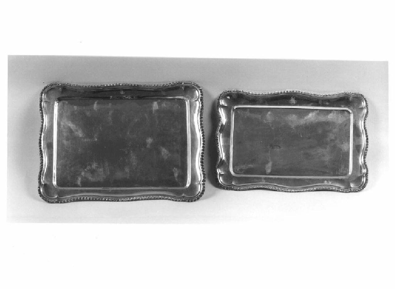 Corpo rettangolare sagomato con bordi cordonati; monogramma sulla tesa