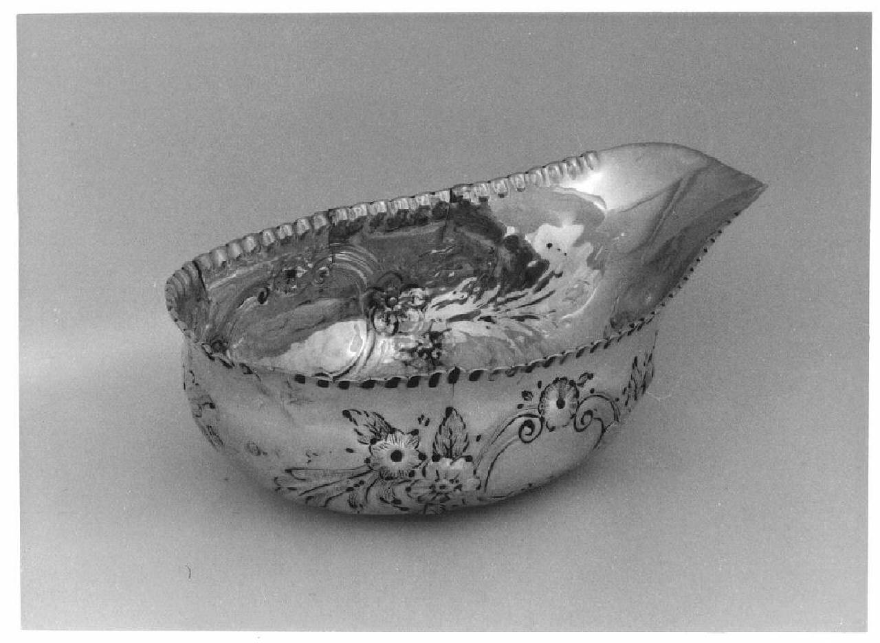 Corpo leggermente allungato, decorato a fiori e rocailles, profilo superiore a ovuli