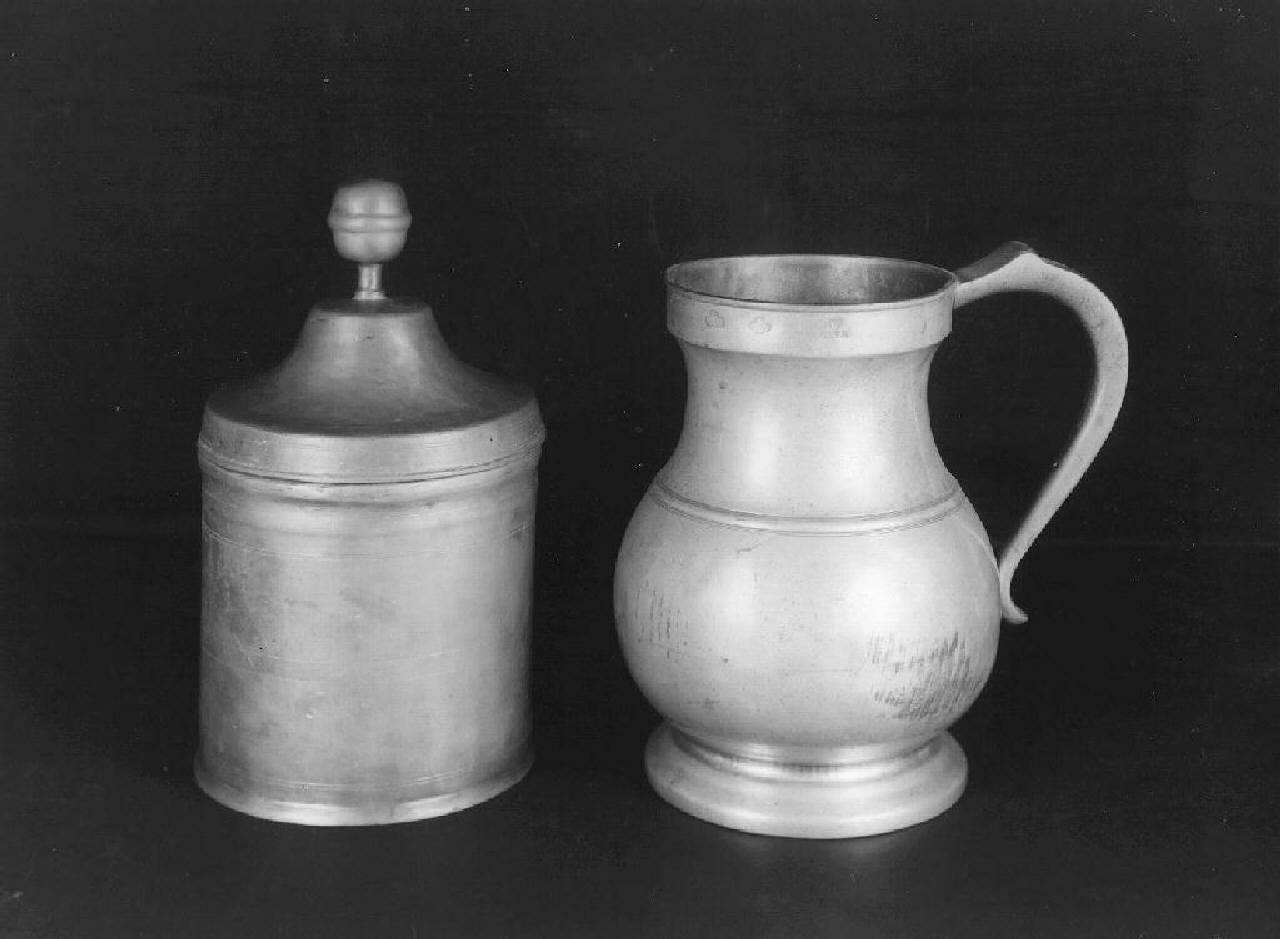 Corpo cilindrico liscio; coperchio indipendente vagamente a campana con presa a pomolo