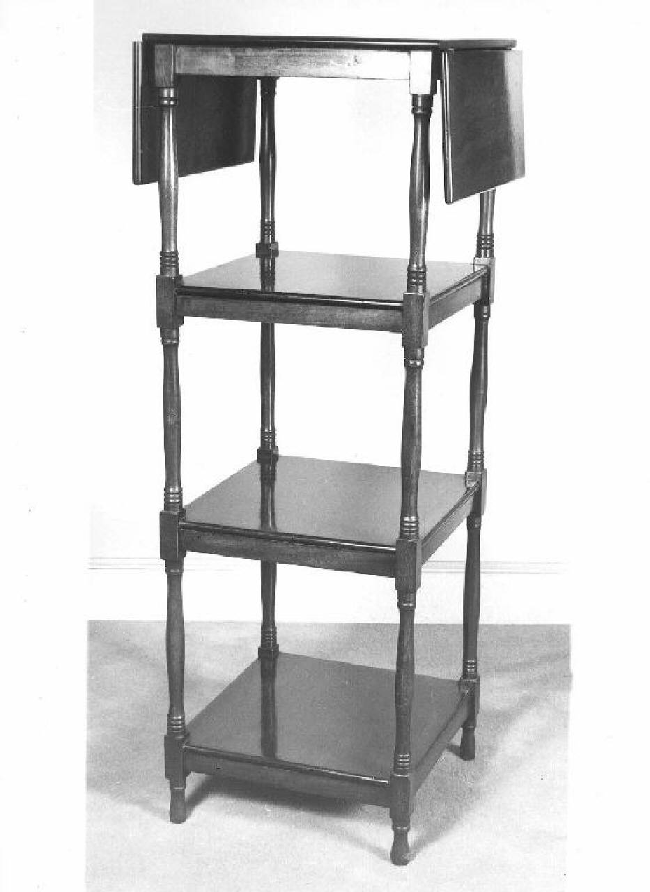 étagere a quattro ripiani, sostegni tubolari con piedi a balaustro, ali laterali incernierate