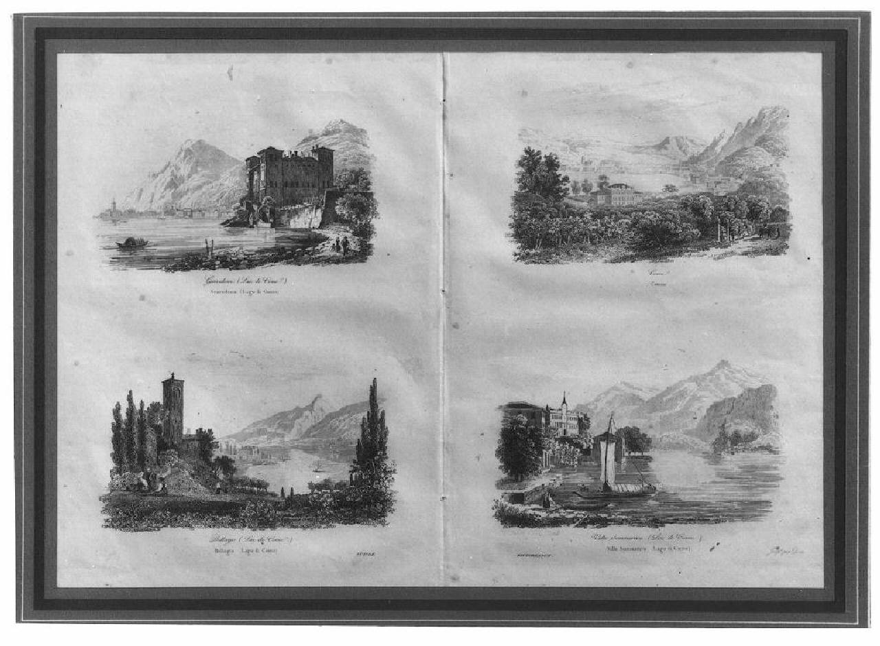 Serie di quattro vedute: Gravedona, Como, Bellagio, Villa Sommariva..