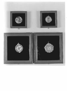 La medaglia è inserita in una cornice di velluto bordeaux entro un cofanetto ricoperto di cuoio marrone la cui parte superiore è in plastica trasparente. Nella parte inferiore del cofanetto c'è un gancio metallico. La medaglia è fissata da un gancio metallico.