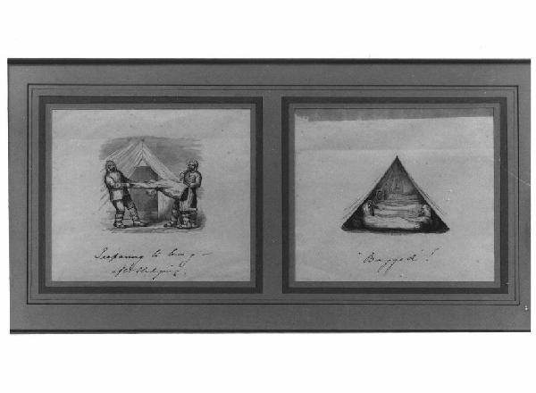 Due incisioni inserite in una cornice in legno.
