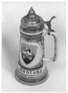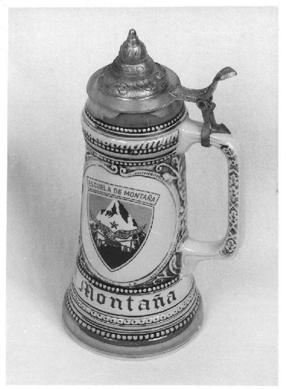 Il boccale ha un coperchio in metallo.