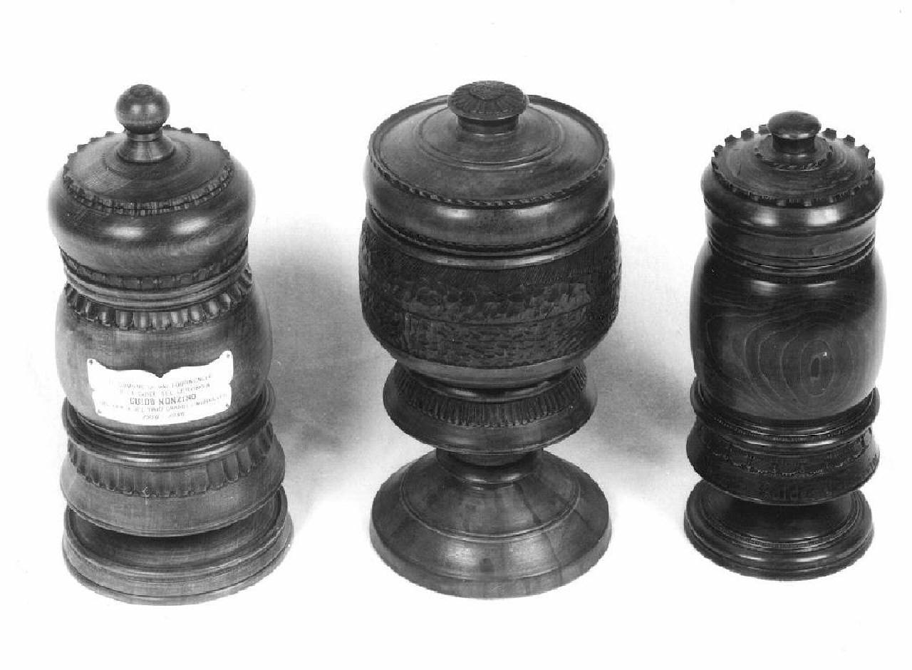 Composto da una coppa con piedistallo bombata con un coperchio .