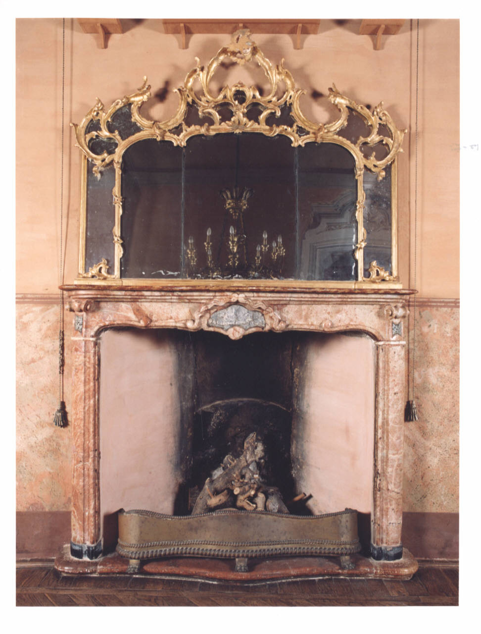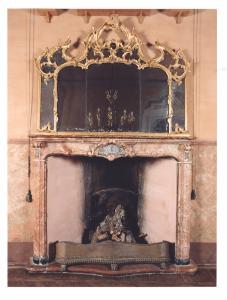 - NOTIZIE STORICO CRITICHE Caminiera con specchiera di manifattura lombarda di epoca rococò, periodo in cui, nelle dimore signorili, "le specchiere dorate [...], trionfano sopra i camini e sopra le consoles. Le immagini riflesse più volte da uno specchio all'altro dilatavano l'ambiente e moltiplicavano le luci dei lampadari" (Alberici C. in "Il mobile lombardo", p. 15). La caminiera è documentata nell'inventario redatto da Carlo Carpani nel 1862: "n. 1 Caminiera con tre pezzi di luce, roccocò bianco e oro"..