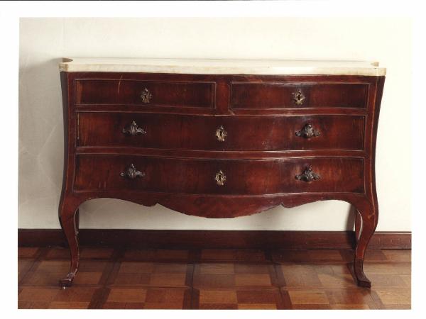 - NOTIZIE STORICO CRITICHE Il comò è in stile Luigi XV, caratterizzato da una certa flessuosità ben visibile sia nei sostegni col tipico profilo ad "S" che nel piano. Conserva ancora le chiavi di cui una non sembra originale.