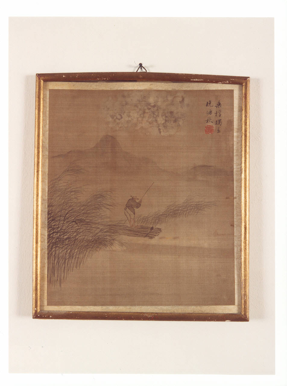 - NOTIZIE STORICO CRITICHE Il dipinto, già nella collezione delle sorelle Gigina e Nedda Necchi, entra a far parte del patrimonio FAI nel 2001, in quanto parte del lascito di Villa Necchi Campiglio a Milano. Il piccolo pannello giapponese - databile alla prima metà del XIX secolo - raffigura un pescatore, come porterebbe a pensare la presenza della zattera di canne che si avventura sullo specchio d'acqua limitato da sottili bambù. Nell'angolo in alto a destra è ancora ben leggibile un'iscrizione con caratteri giapponesi e l'Hanko (o Inkan), timbro ad inchiostro rosso utilizzato come firma nell'Asia orientale. La presenza di questo pannello dipinto di ambito giapponese nella collezione delle sorelle Necchi, insieme ad altre opere di produzione cinese e giapponese, testimonia un certo interesse di Gigina e Nedda per l'arte dell'Estremo Oriente.