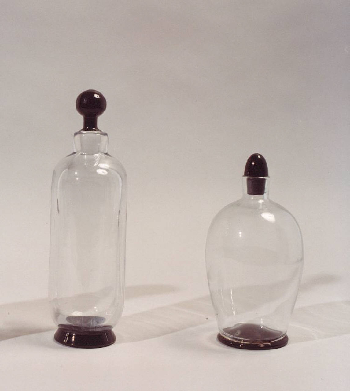 Quattro bottiglie con fondo e tappo di chiusura nero.