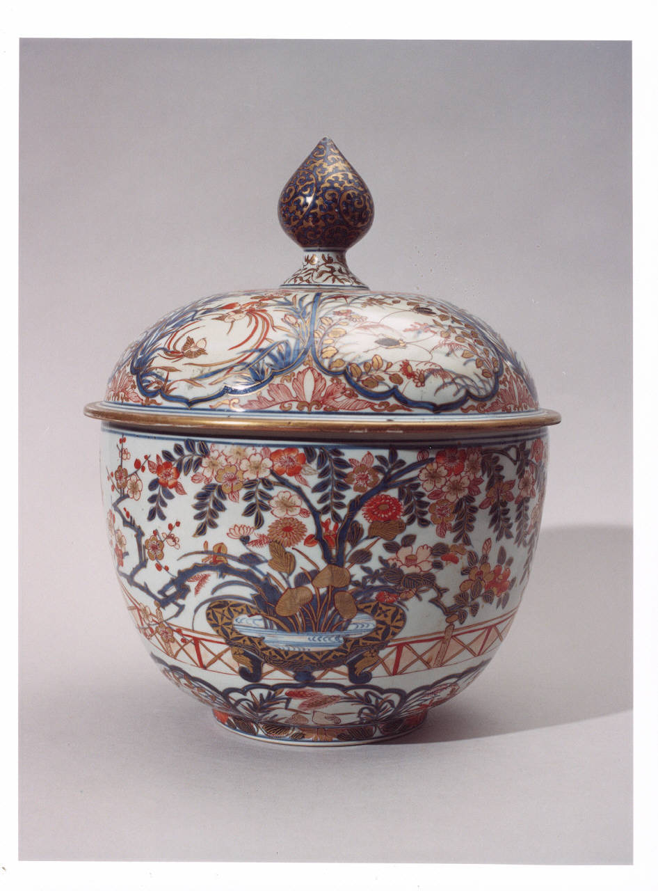 Splendido vaso con coperchio con decoro Imari.
