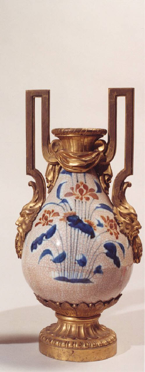 Vaso panciuto con imboccatura; base e anse in bronzo dorato.