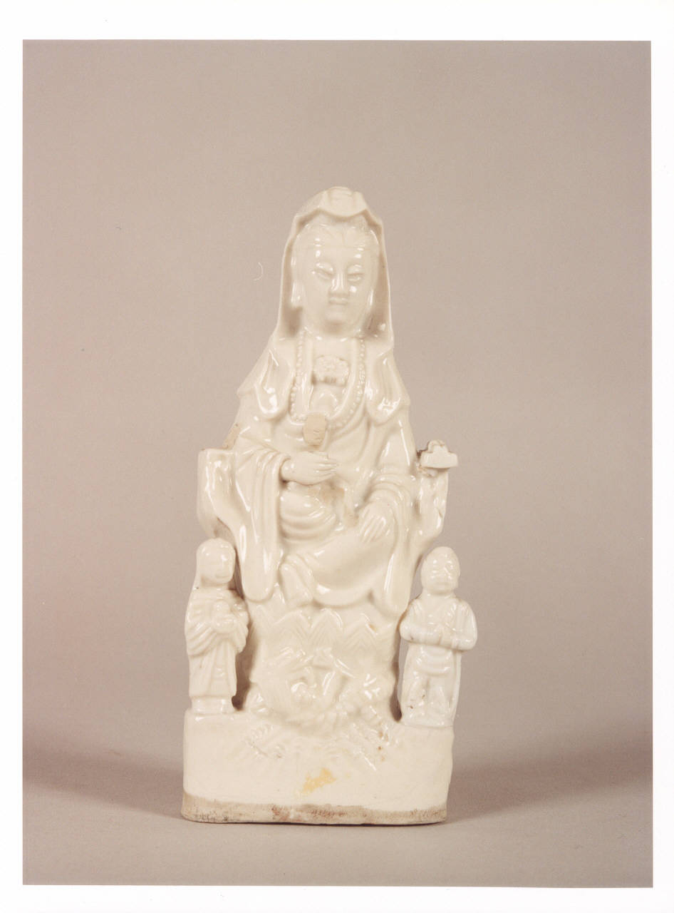 - NOTIZIE STORICO CRITICHE Nella seconda metà del XVIII secolo viene assai richiesta in Europa dalla Cina una produzione di piccola statuaria. L'oggetto in esame è in procellana "Blanc de chine" prodotta nella Cina meridionale a Dehua. Il corpo era composto proporzionalmente da meno caolino, di qualità molto pura, e più fedelspato e quarzo, ottenendo un composto omogeneo, traslucido, assai plastico che ben si adattava ad essere modellato in statuette di varie fogge, sovente con l'uso di stampi. Fra i temi ricorrenti nella piccola statuaria vi sono personaggi tratti dalle filosofie taoiste o buddiste.\nIl manufatto in precedenza si trovava nel piano seminterrato di Villa Necchi.