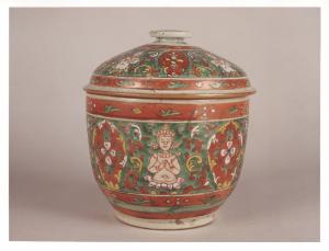 - NOTIZIE STORICO CRITICHE Questo vaso con coperchio, realizzato a Canton, è un pezzo probabilmente creato per l'esportazione in Europa come farebbe supporre il decoro con elementi floreali frammisto a immagini di divinità.