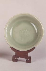 - NOTIZIE STORICO CRITICHE Le ceramiche "celadons", il cui nome fu coniato in Francia derivandolo da un personaggio dell'Astree di H. d'Urfé tratto dalle "Metamorfosi" di Ovidio, sono le tipologie più caratteristiche di tutta la produzione Song (960-1279). Si caratterizzano per un impasto monocromo, molto simile a quello della porcellana, denso e nuvolato della coperta, per la perfezione dei verdi, una superficie liscia e oleosa che ricorda la giada. Compaiono anche tonalità azzurre, particolarmente richieste, mentre nella produzione più tardiva tonalità verde mare o verde oliva, spesso con delicati motivi lievemente incisi sottocoperta. Nel corso dell'ottocento si ebbero delle riproposizioni di questa particolare ceramica, di cui un esempio è costituito da questo piatto, senza però raggiungere un vero e proprio valore artistico legato alla creazione originale.