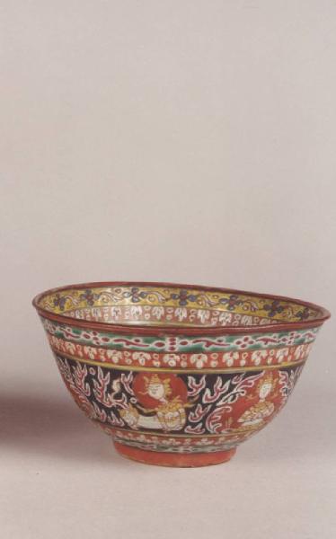 - NOTIZIE STORICO CRITICHE Questa ciotola, realizzata a Canton, è un pezzo probabilmente creato per l'esportazione in Europa come farebbe supporre il decoro con elementi floreali frammisto a immagini di divinità.