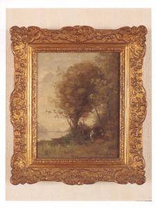 - NOTIZIE STORICO CRITICHE L'opera, già nella collezione delle sorelle Gigina e Nedda Necchi, entra a far parte del patrimonio FAI nel 2001, in quanto parte del lascito di Villa Necchi Campiglio a Milano. Il dipinto raffigura uno scorcio di un paesaggio fluviale con grossi alberi che occupano quasi tutta la composizione; una piccola figura femminile è ritratta di spalle mentre cammina lungo il sentiero. Il dipinto è stato realizzato con veloci tocchi di pennello e usando una cromia prevalentemente scura, giocata sui toni verdi con un orizzonte che si illumina sullo sfondo. Firmata in basso a destra, l'opera è stata eseguita da Paul Désiré Trouillebert, pittore francese legato alla scuola di Barbizon e alla pittura di paesaggio.