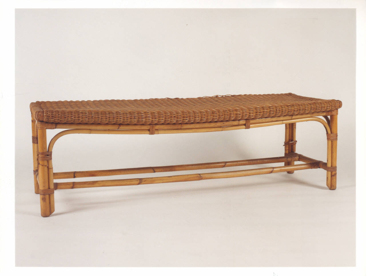 Coppia di panche in vimine senza schienale.