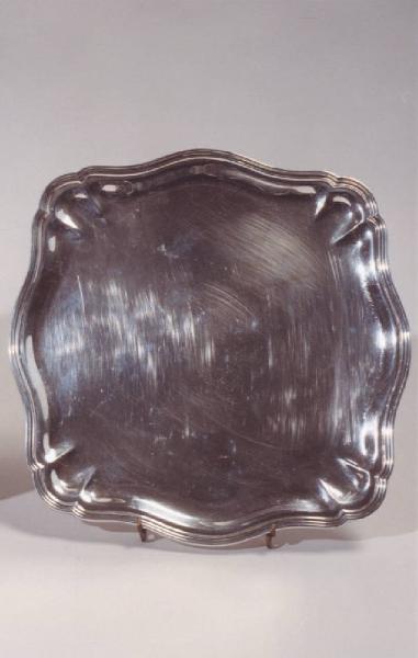 Vassoio quadrato con angoli sagomati.