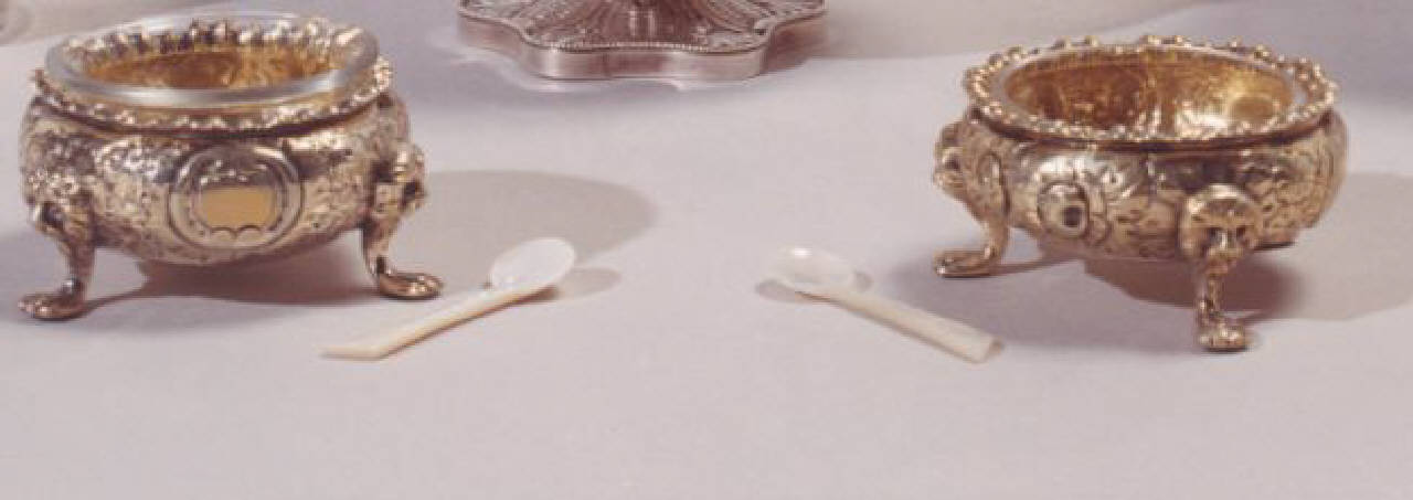 - NOTIZIE STORICO CRITICHE Non è stato possibile reperire alcuna notizia sull'argentiere di cui rimane indicazione nelle lettere incise sul fondo delle saliere.