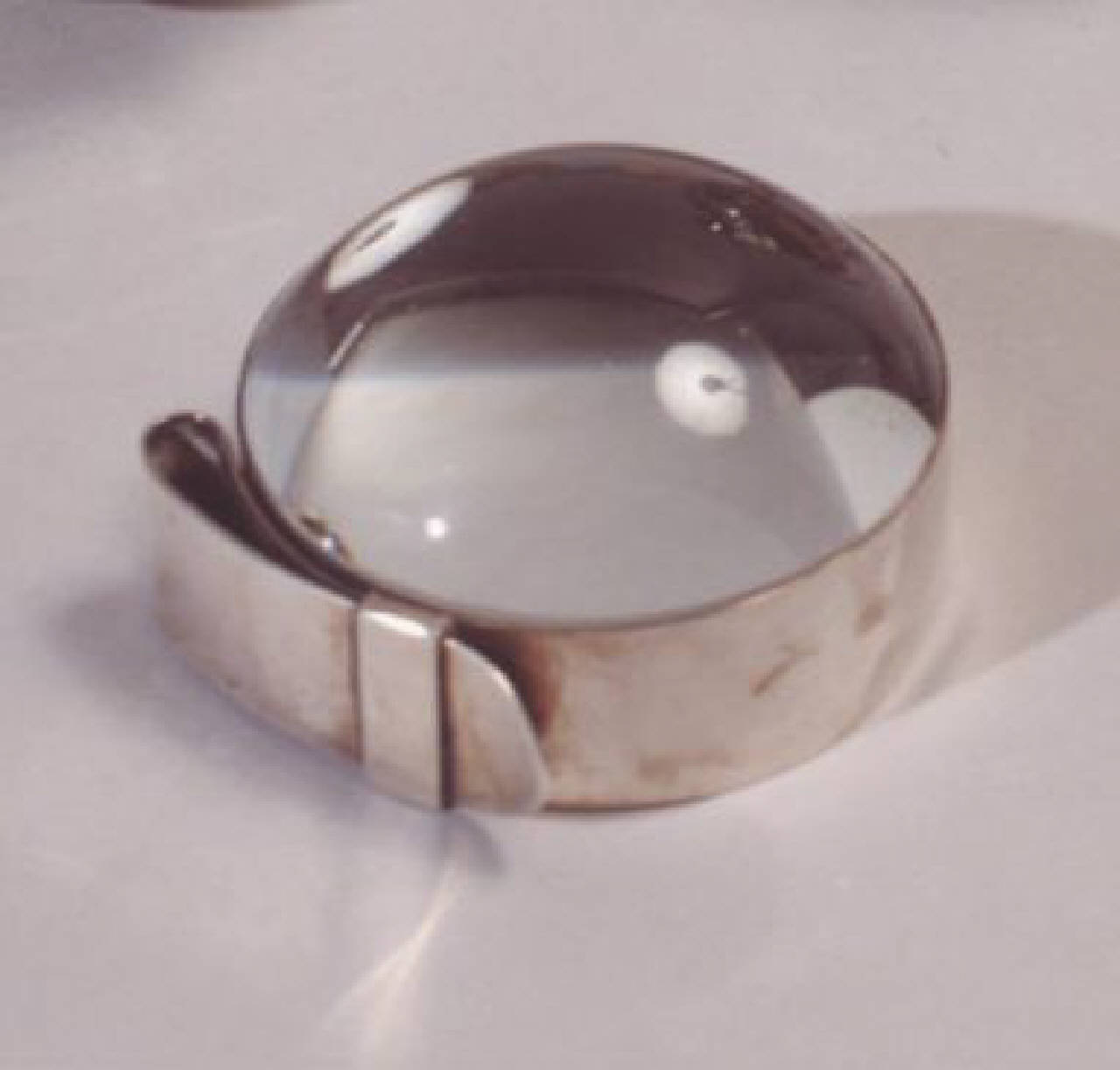 Lente d'ingrandimento da tavolo bordata da un nastro in argento.