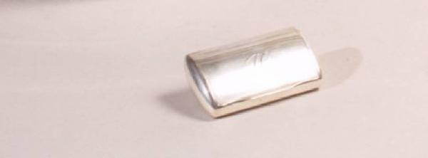 Piccola e semplicissima tabacchiera con coperchio a scatto decorato con un monogramma.
