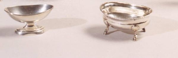 Due saliere: una ovale priva di decorazione, altra ovale con quattro piedini.