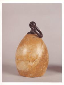 Fermaporta in alabastro chiaro con venature bianche, presa a maniglia circolare.