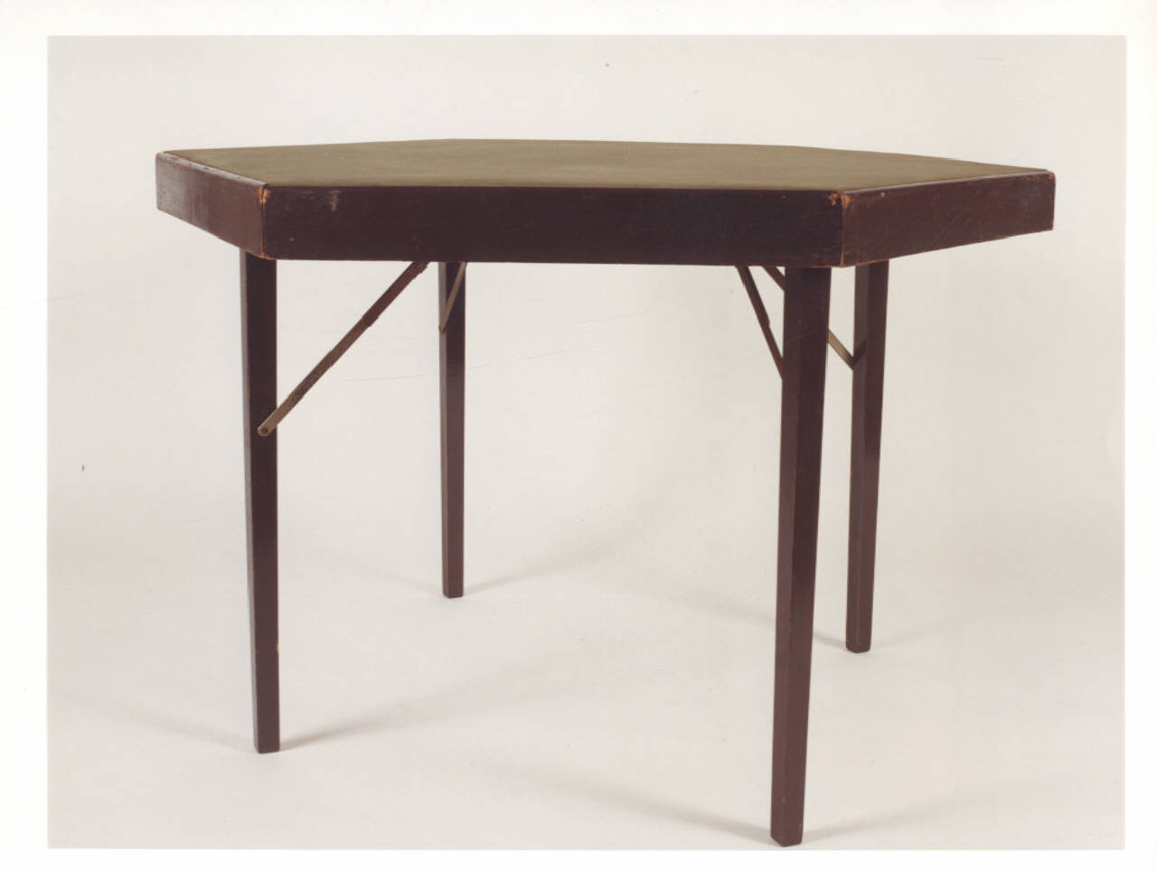 Tavolo da gioco esagonale pieghevole con cerniere in metallo.