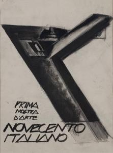 Il foglio è occupato completamente nella parte superiore da un segno di chiara paternità ma non altrettanto chiara leggibilità: un'acquila, un fascio littorio, il gesto del saluto romano, un'architettura modernista. Nella parte bassa si affianca al disegno la scritta a lettere capitali "Prima mostra d'arte Novecento Italiano", portando a identificare nell'oggetto un bozzetto della citata mostra del 1926. Disegno a china e matita su carta in bianco e nero.