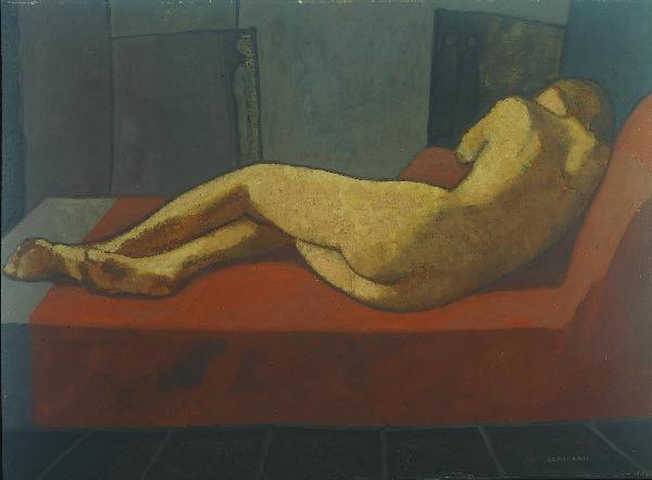 - NOTIZIE STORICO CRITICHE L'opera di Felice Casorati donata al FAI da Claudia Gian Ferrari, presenta un nudo vicinisso a chi guarda e allo stesso tempo terribilmente distante. Questa donna offre il suo corpo senza veli eppure si gira di schiena. Il suo corpo - raccontato da una linea netta e chiusa - segue le forme della poltrona che lo sostiene ma senza diventarne parte, è tanto chiuso in se stessa e semplificato da avvicinarsi più al concetto di simbolo che alla vera e semplice descrizione di un nudo. Se l'opera pare ambientata nello studio dell'artista la donna ne è parte solo incidentalmente, è descritto uno spazio quasi inaitabile, certamente capace di lasciare inquieto chi ne divera. Essendo il suo corpo più luminoso del resto del quadro, rischia di rimanere fuori dallo spazio creato dalla fuga delle piastrelle del pavimento nell'incontro con la parete retrostante con due quadri appoggiati, di non parlare con l'ambiente circostante. La cornice presente è opera dell'artista stesso.